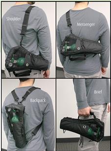 For M6 and M9 oxygen tanksReconfigurable O2 tank bag adjusts to 5 carrying modes: vertical and horizontal shoulder bag, backpack, brief, and fanny pack