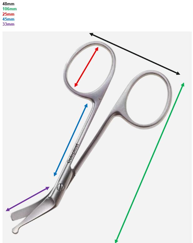 For detailed information regarding the size and specifications of the Coloplast Ostomy Scissors, please refer to the image below for the dimensions. This will help you ensure that the product meets your specific requirements and provides the optimal fit for your ostomy care needs.